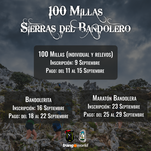 Desde el Club de Montaña Tritón, con el apoyo de @trangoworldofficial, queremos anunciar las fechas de pago para nuestras emocionantes pruebas. ¡Prepárate para desafiar tus límites y sumergirte en la belleza de las Sierras del Bandolero! 🔥
